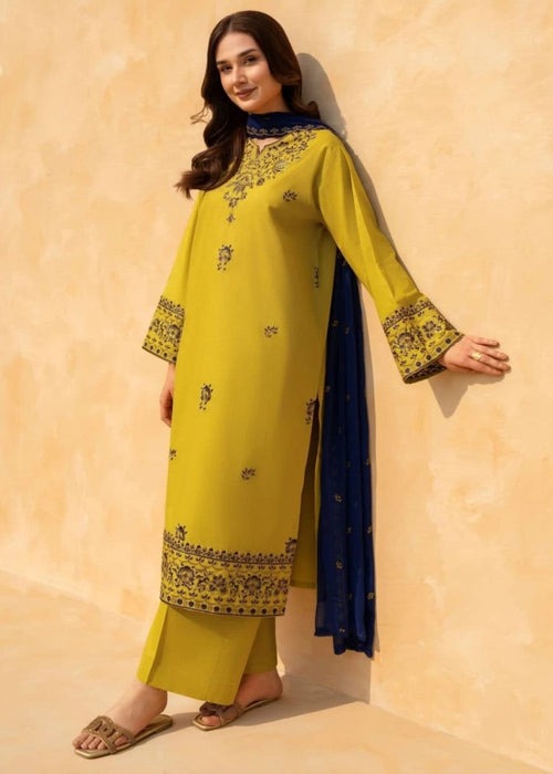 Step into elegance with this embroidered cotton kurta set, styled in a refreshing olive tone and paired with a flowy chiffon dupatta. Perfect for chic summer looks that blend comfort and grace. ✨